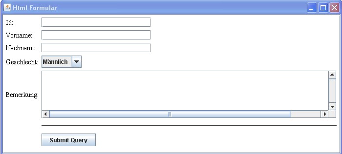 Das HTML Formular ist eine interessante Alternative zu einem reinen Swing Formular.