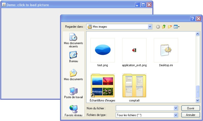Die Klasse "PictureDemo" ermöglicht das Laden eines Bildes durch einen Klick auf das Fenster.