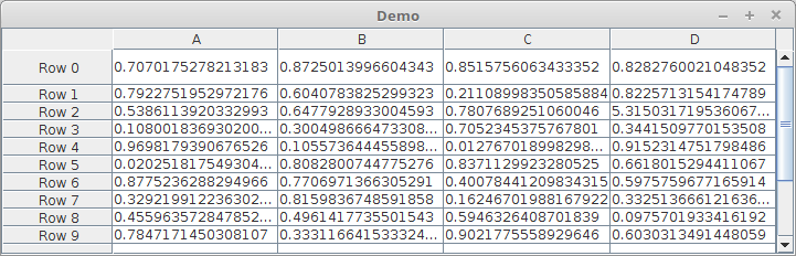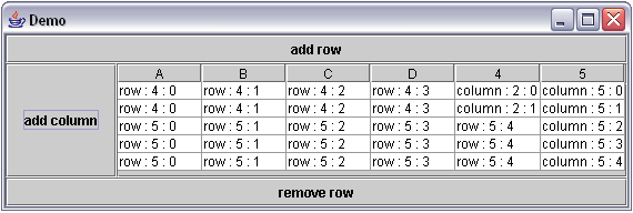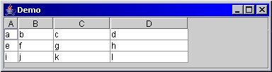Das Demoframe. Man beachte, dass der Header dem JScrollPane übergeben werden muss.