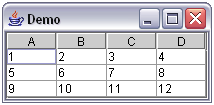 [Bearbeiten | Quelltext bearbeiten]- JTable