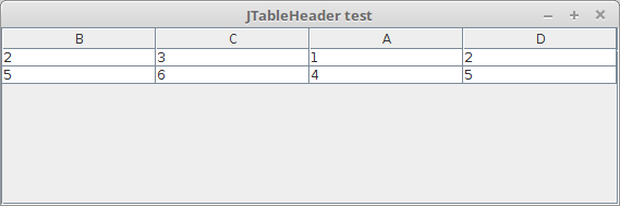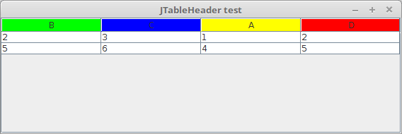 [Bearbeiten | Quelltext bearbeiten]Standardmäßig unterstützt das JTable nur einen Header, der über den Spalten steht.