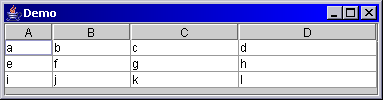 [Bearbeiten | Quelltext bearbeiten]Von allen Components in ganz AWT und Swing, ist das JTable wohl die komplexeste überhaupt (allenfalls kann der JTree noch mithalten).