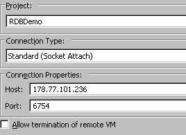 java -Xdebug -Xnoagent -Djava.compiler=NONE -Xrunjdwp:transport=dt_socket,server=y,suspend=n,address=6754 -jar rdbdemo.jar