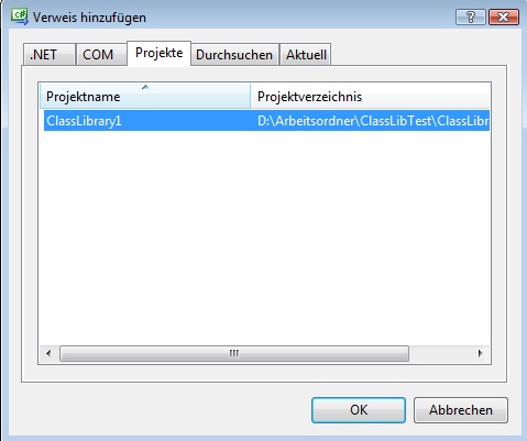 Ein Beispiel: <code=CSharp> ClassLibrary1.Class1 myObjekt = new ClassLibrary1.Class1(); </Code=CSharp>