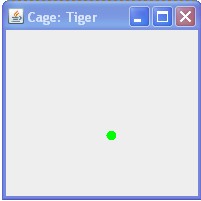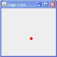 Der Aufruf von repaint auf der "Cage" Komponente bewirkt dann den asynchronen Aufruf der paintComponent Methode, welche das aktualisierte "Animal"-Objekt korrekt darstellt: