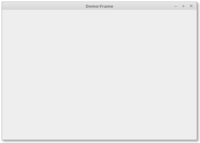 Der Code der Anwendung ist schon für den nächsten Schritt vorbereitet, so dass in den folgenden Schritten weniger verwirrende Code-Änderungen durchgeführt werden müssen. [[Datei:Demo-Frame_01.png]] | Der Code der Anwendung ist schon für den nächsten Schritt vorbereitet, so dass in den folgenden Schritten weniger verwirrende Code-Änderungen durchgeführt werden müssen. [[Datei:Demo-Frame_01.png|200px|thumb|left|Die Ausgabe: ein leerer JFrame]] | ||